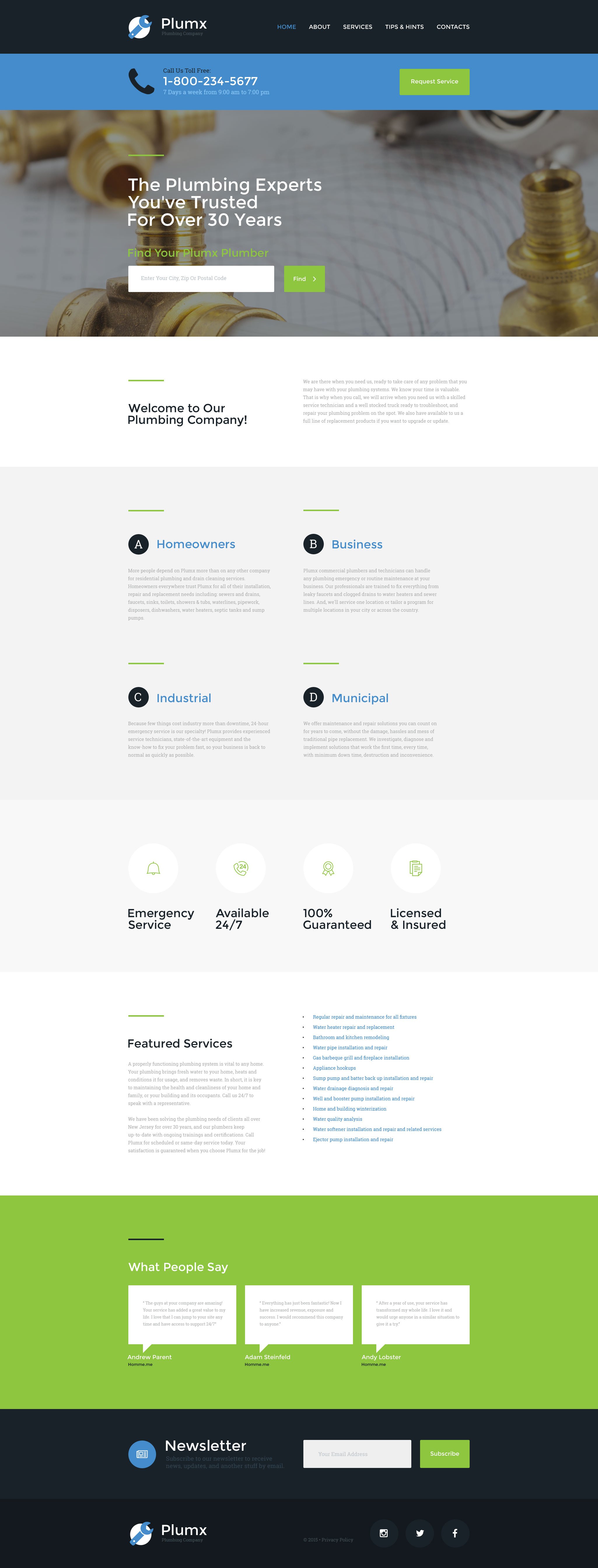 Plumbing - подходит для сайтов в сфере Сантехника. HTML5 минималистичный шаблон - Plumx Website Template.