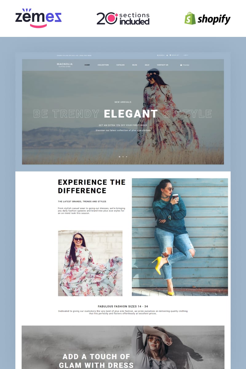 Shopify интернет-магазин - Fashion Store - Plus Size Clothing Store Shopify Theme, специально для сайтов в категории Модный магазин.