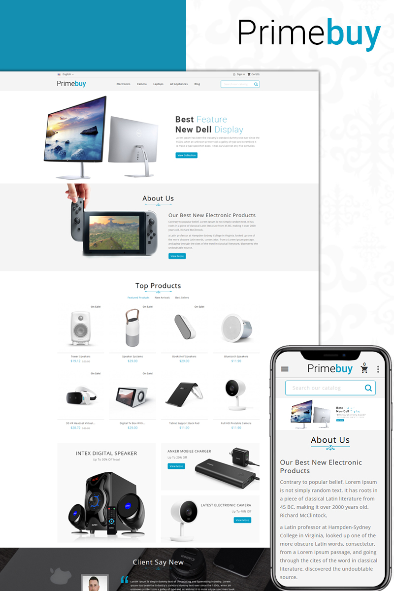PrestaShop шаблон интернет-магазина - Primebuy - Responsive 1.7 PrestaShop Theme, превосходно подходит для сайтов в сфере Магазин электроники.
