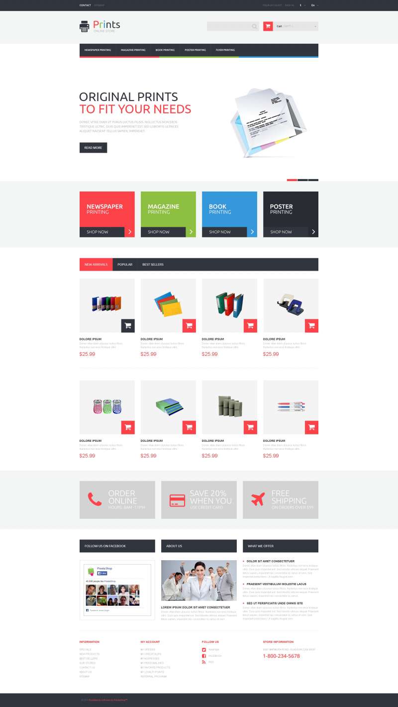 Print Shop - хорошо подходит для сайтов Типография. PrestaShop интернет-магазин для сайта - Print Store PrestaShop Theme.