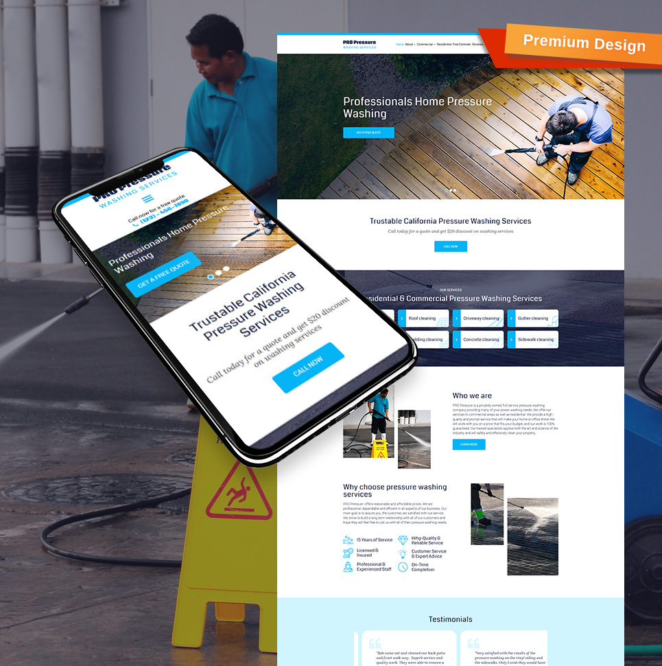 Moto CMS 3 новый шаблон - Pro Pressure - Washing Services Moto CMS 3 Template, идеально подойдет для сайтов в сфере Техническое обслуживание.