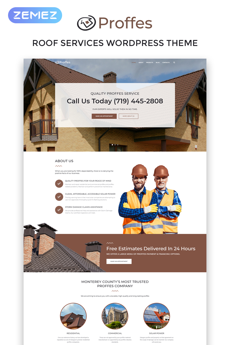 Proffes - идеально подходит для сайтов в области Кровельная компания. WordPress отличный шаблон - Roof Services Multipurpose Classic WordPress Elementor Theme.