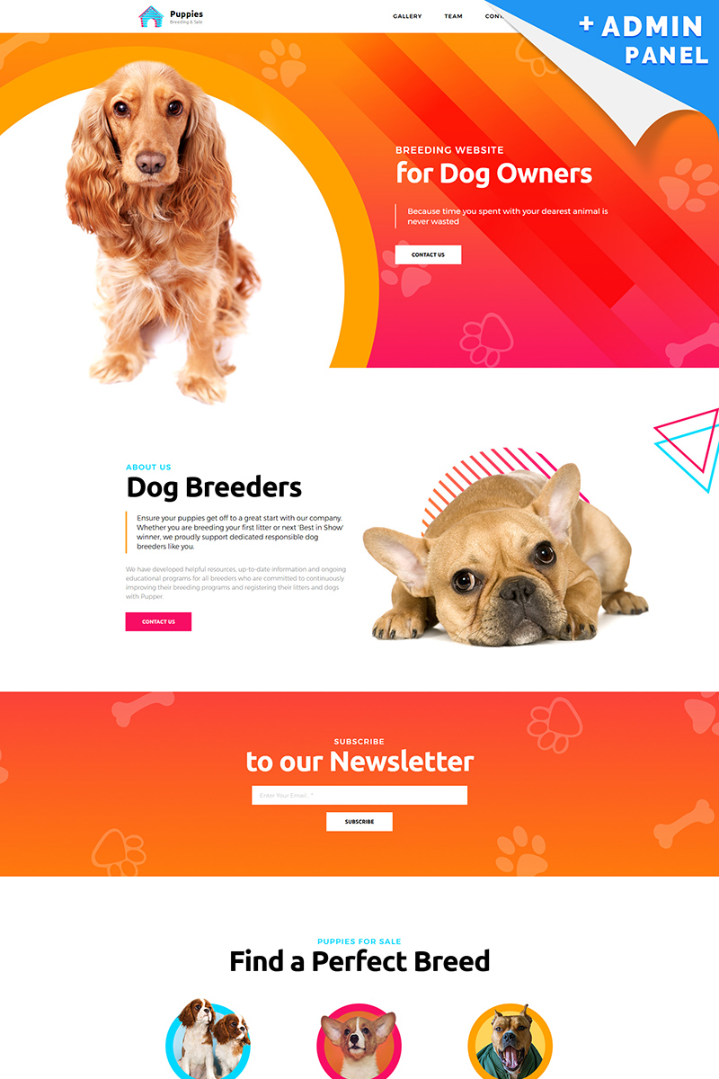 Puppies - подходит для сайтов Собаки. Лендинг шаблон одностраничного сайта - Dog Breeder Landing Page Template.