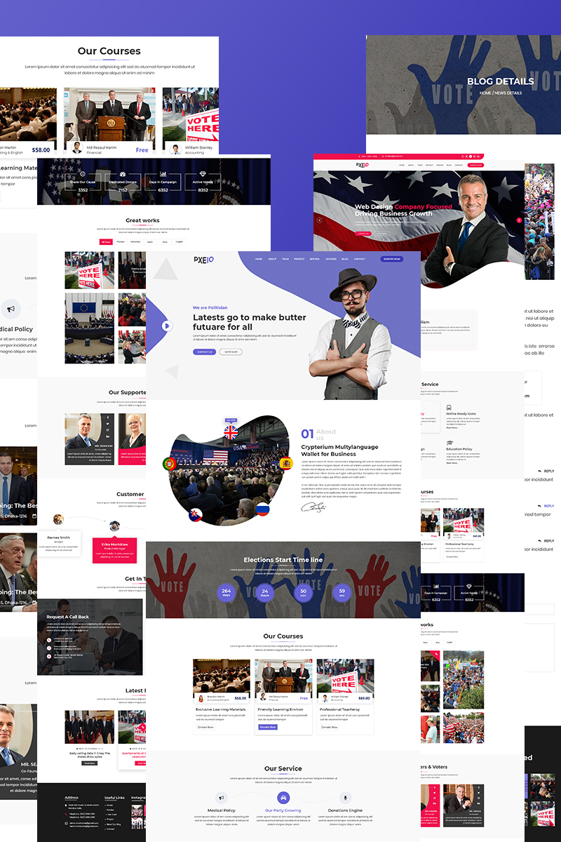 Pxeio – политический адаптивный шаблон целевой страницы - Political Candidate - Лендинг шаблон для одностраничного сайта