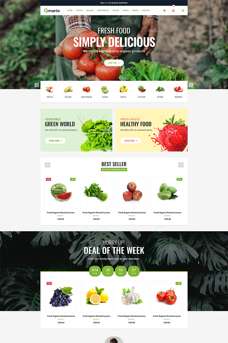 HTML5 популярный шаблон - Qmarto - Organic Store HTML5 Website Template, хорошо подойдет для сайтов Магазин еды.