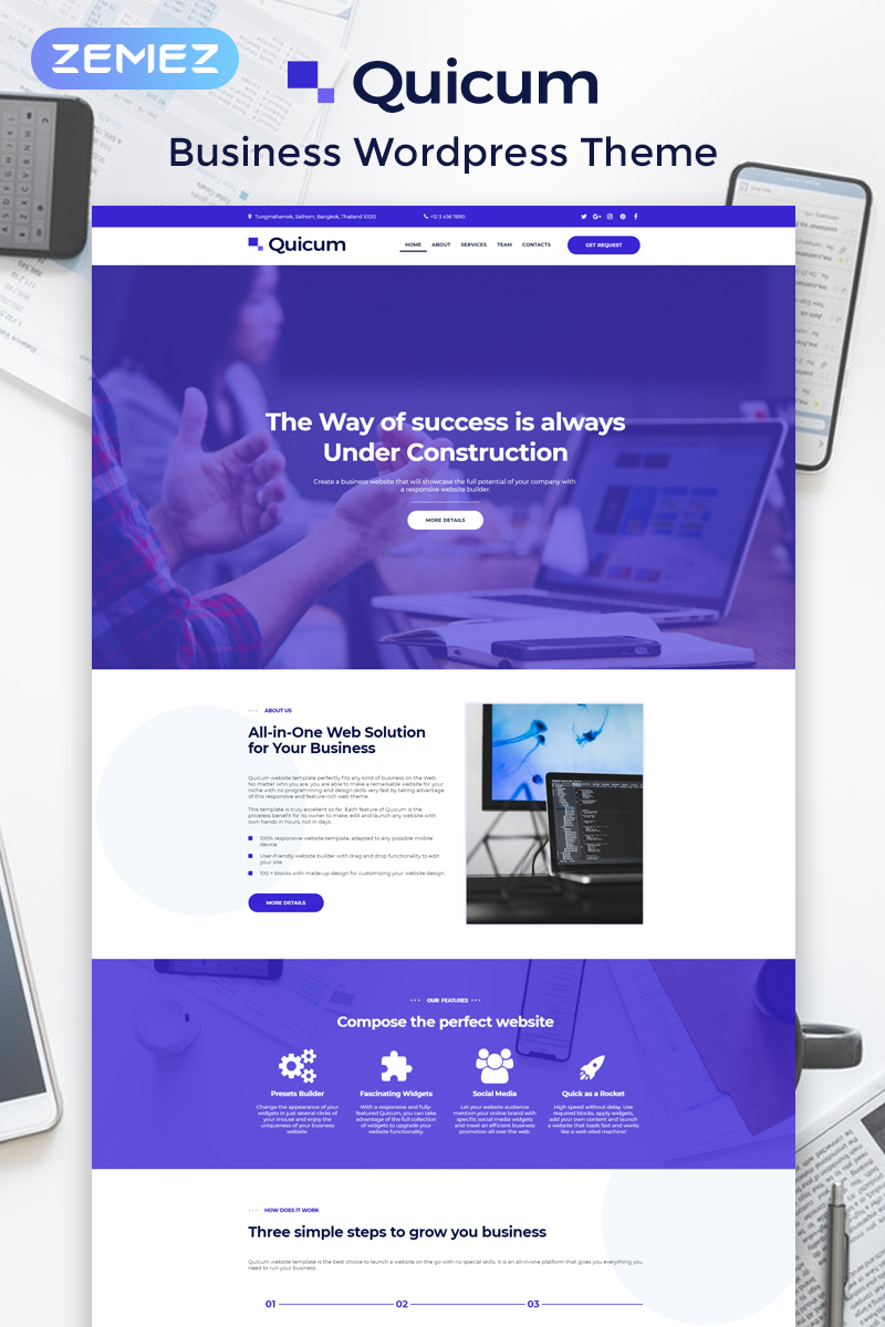 WordPress популярный шаблон - Quicum - Business Multipurpose Classic WordPress Elementor Theme, превосходно подойдет для сайтов на тему Бизнес услуги.