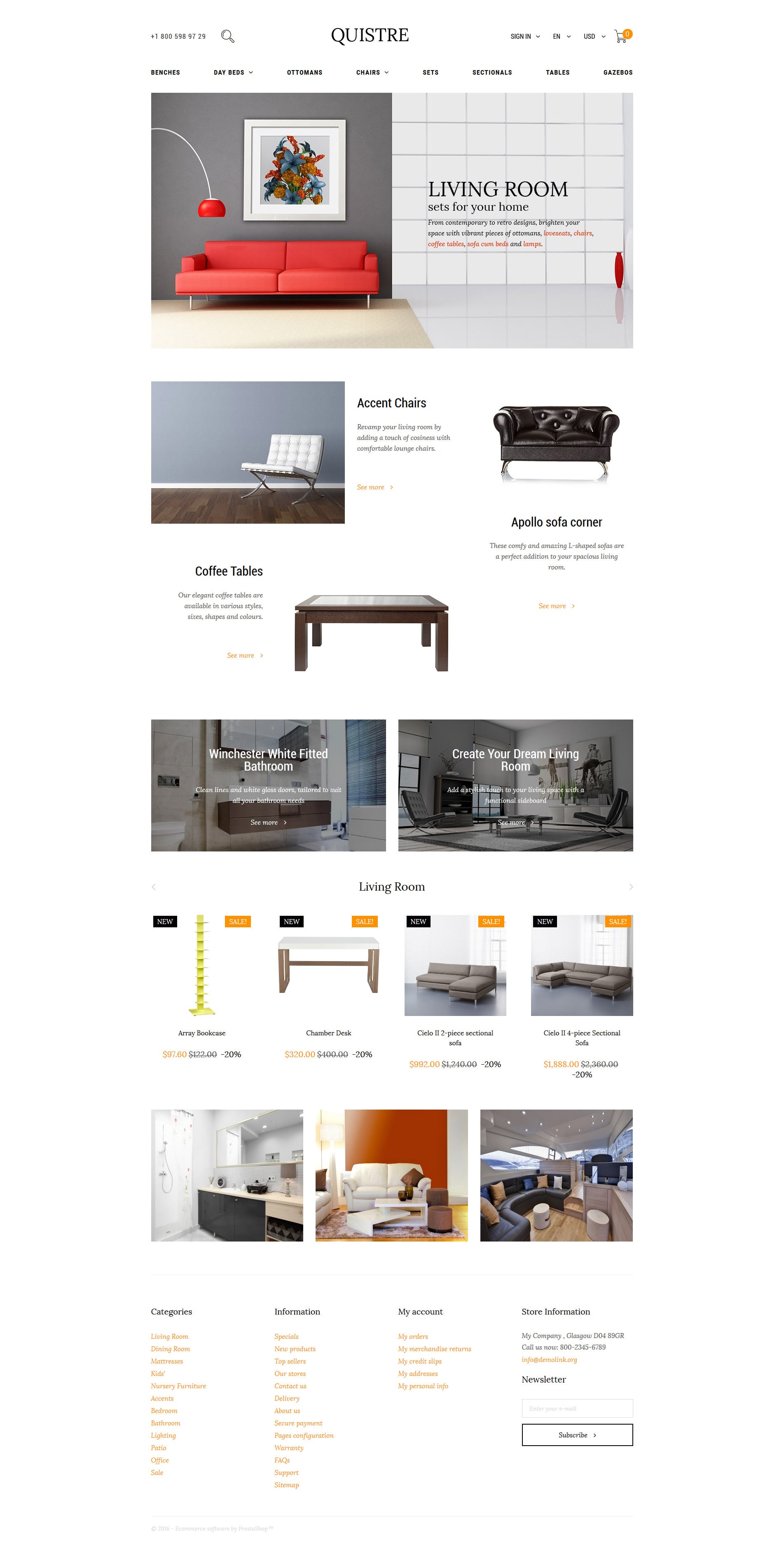 PrestaShop шаблон для интернет-магазина - Quistre - Interior PrestaShop Theme, хорошо подойдет для сайтов в категории Дизайн и интерьер.