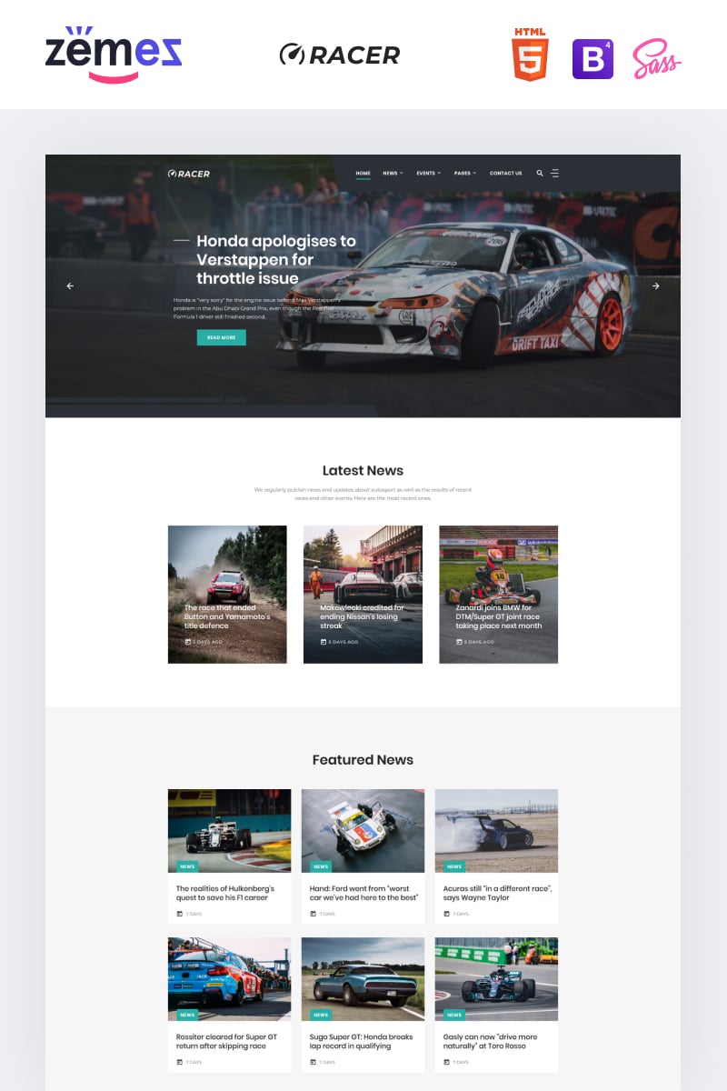 HTML5 новый шаблон - Racer - Car Sports News Website Template, хорошо подходит для сайтов в сфере Автогонки.