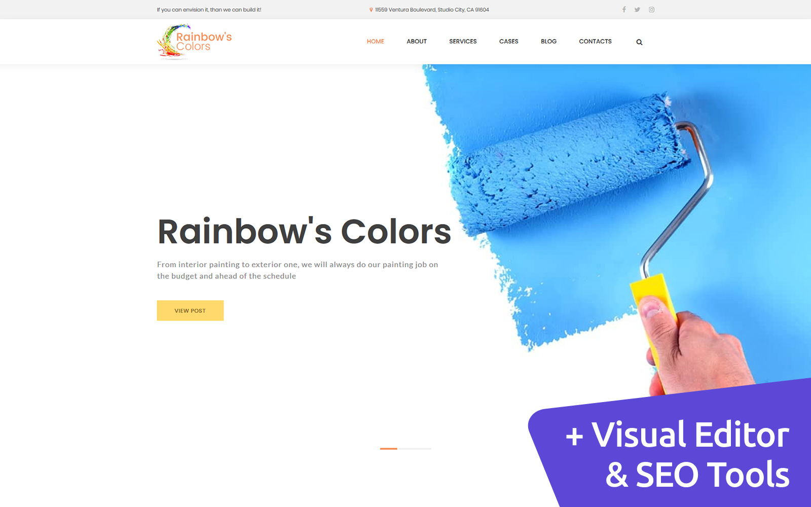 Moto CMS 3 эффектный шаблон - Rainbow's - Painting Company Moto CMS 3 Template, хорошо подойдет для сайтов на тему Малярная компания.