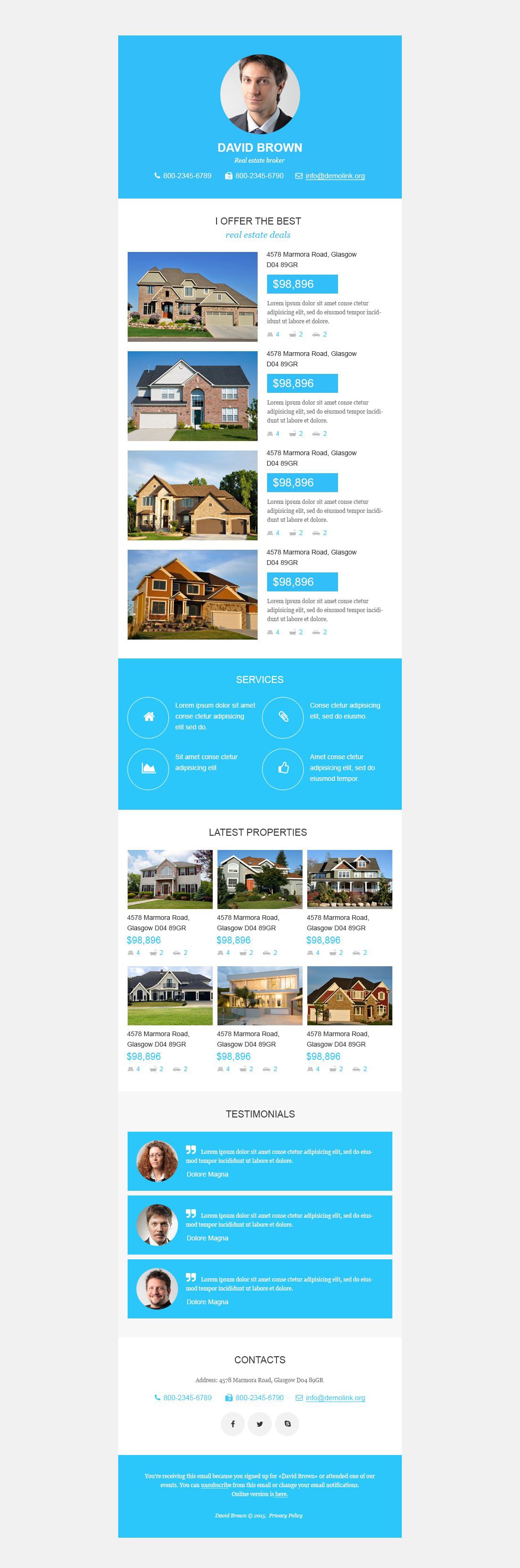 Real Estate Agency - превосходно подойдет для сайтов в категории Агентство недвижимости. Email шаблон писем для рассылки - Real Estate Agency Responsive Newsletter Template.