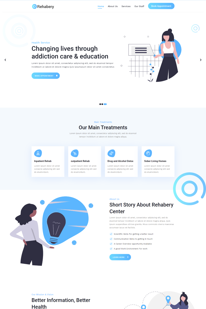 Шаблон посадочной страницы rehabery landing page - Rehabilitation - Лендинг шаблон для одностраничного сайта