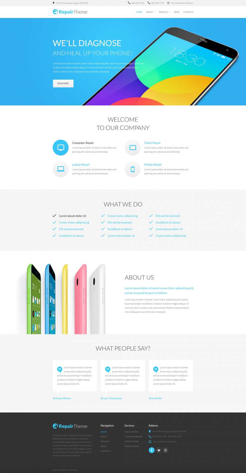 Computer Repair - хорошо подойдет для сайтов в категории Ремонт компьютеров. HTML5 мультишаблон - RepairTheme Website Template.