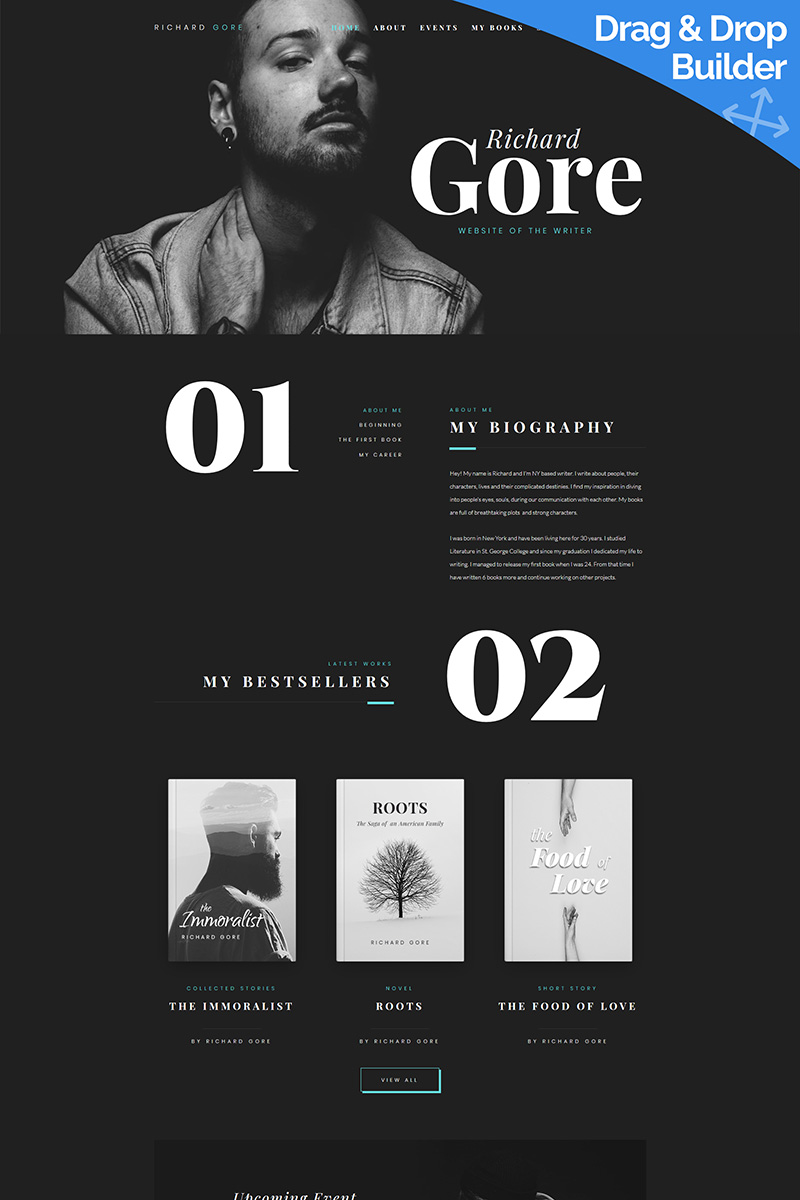 Richard Gore - превосходно подходит для сайтов в области Персональная страница. Moto CMS 3 мультишаблон для сайта - Creative Portfolio Moto CMS 3 Template.