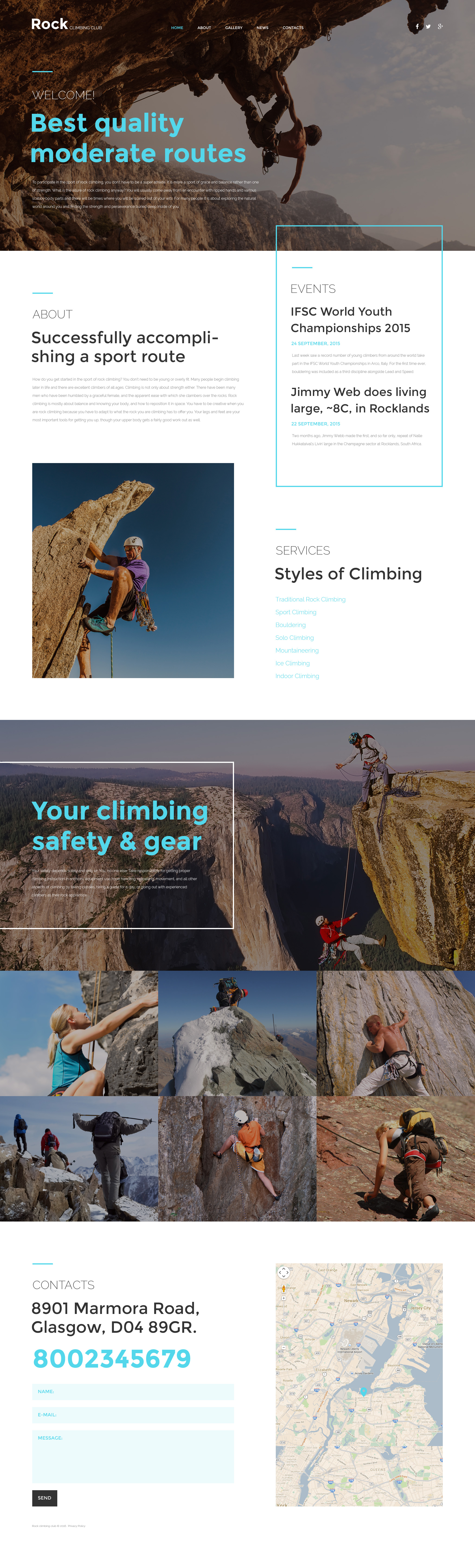 Climbing - превосходно подойдет для сайтов на тему Альпинизм. HTML5 приятный шаблон - Rock Climbing Club Website Template.