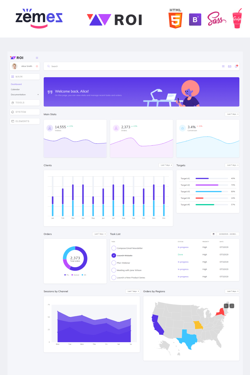 Панель управления шаблон панели управления - ROI - Multipurpose Creative Dashboard Admin Template, отлично подойдет для сайтов Бизнес услуги.