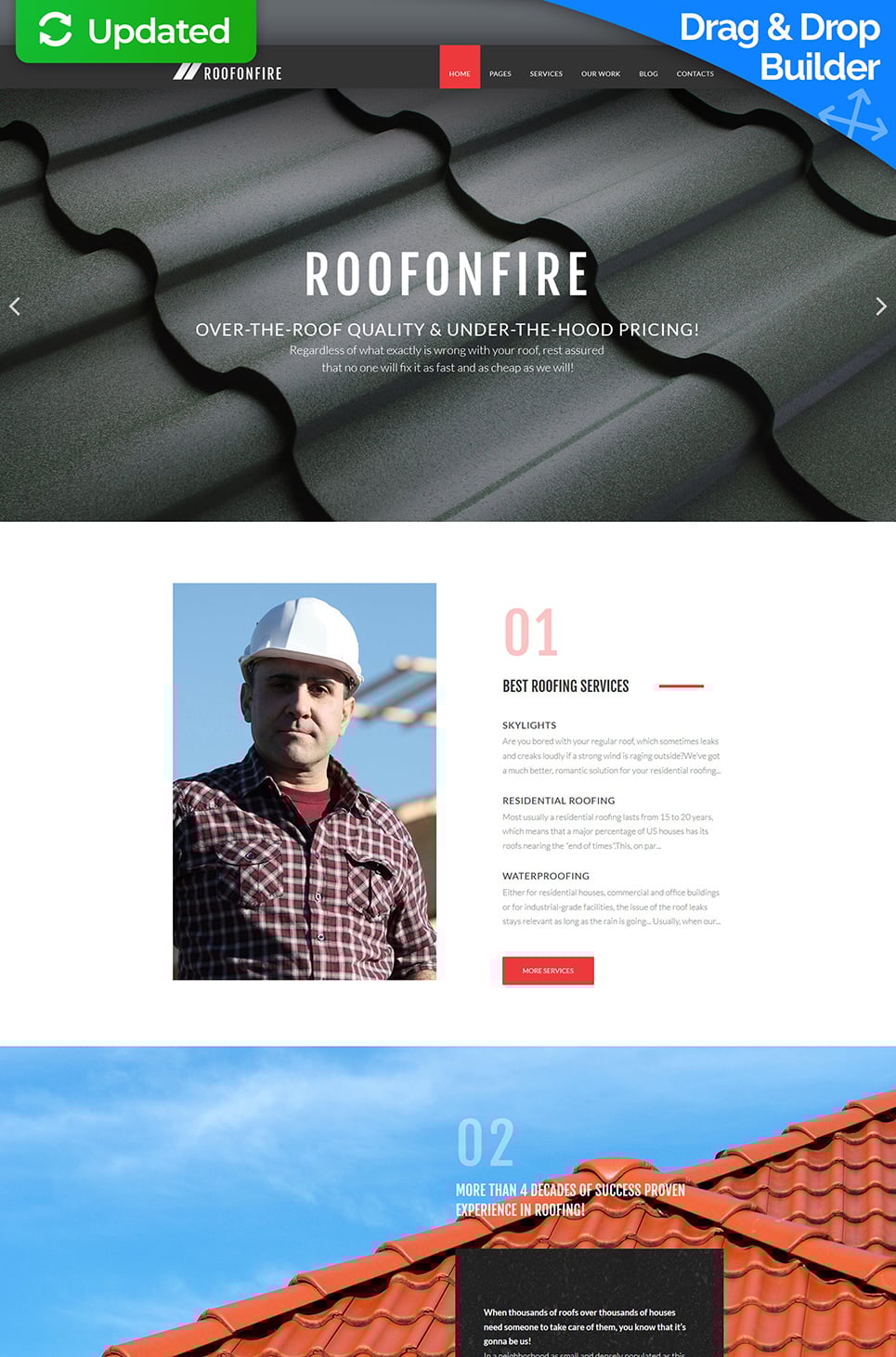 Moto CMS 3 мультишаблон для сайта - RoofOnFire - Roofing Company Moto CMS 3 Template, специально для сайтов в сфере Кровельная компания.