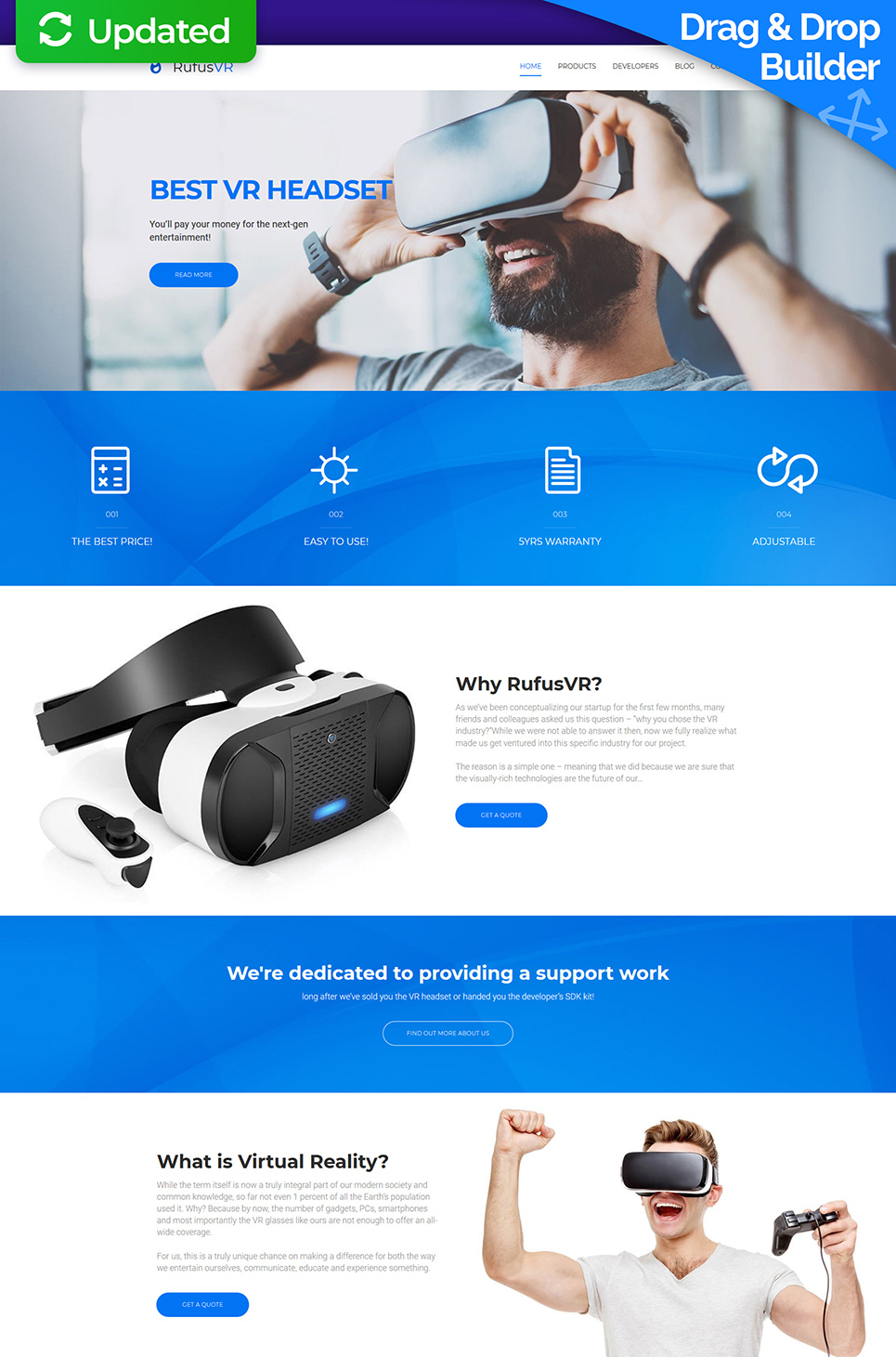 RufusVR - идеально подходит для сайтов Электроника. Moto CMS 3 современный шаблон - VR Startup Moto CMS 3 Template.