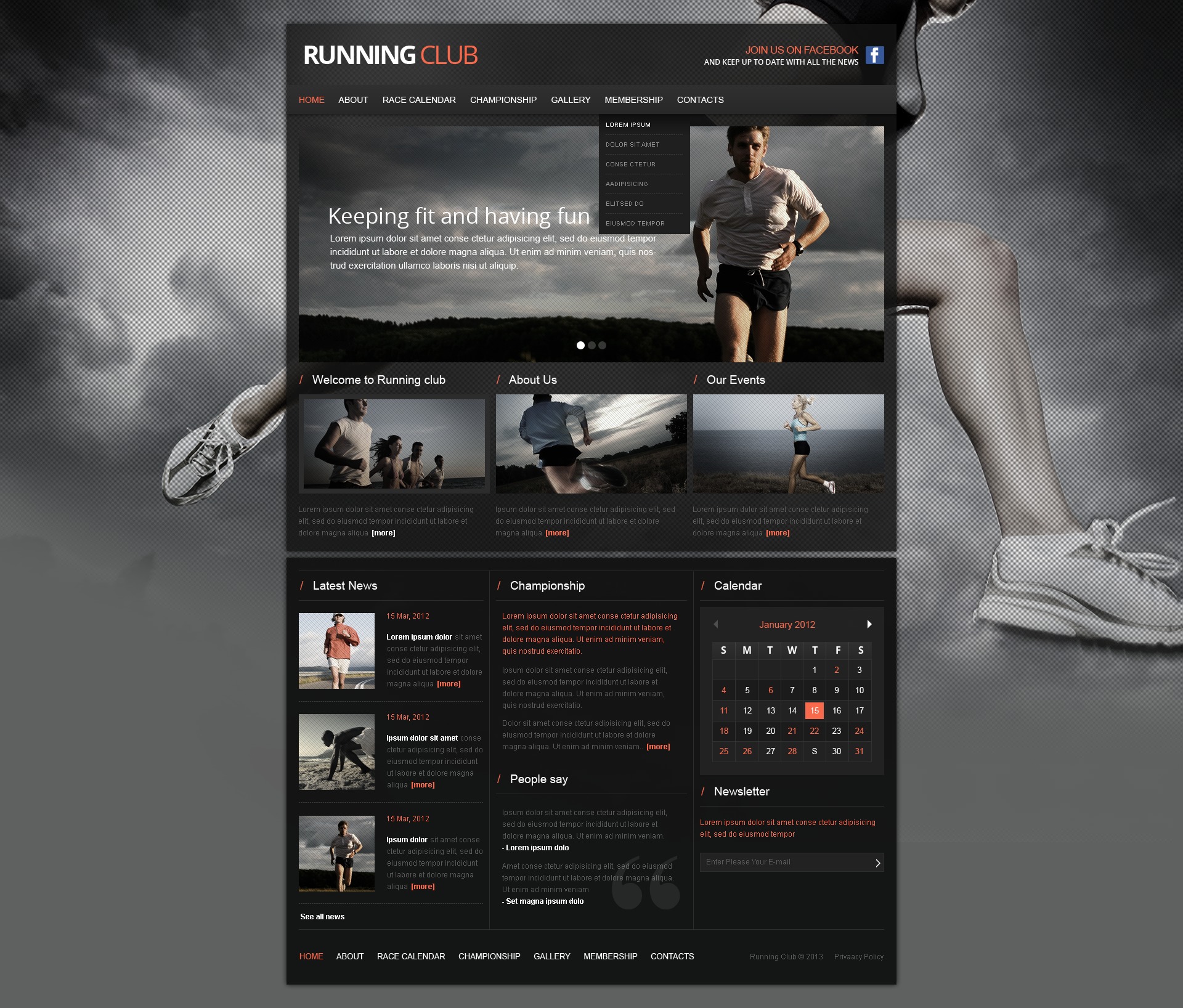 HTML5 новый шаблон - Running - Running Website Template, превосходно подходит для сайтов на тему Бег.