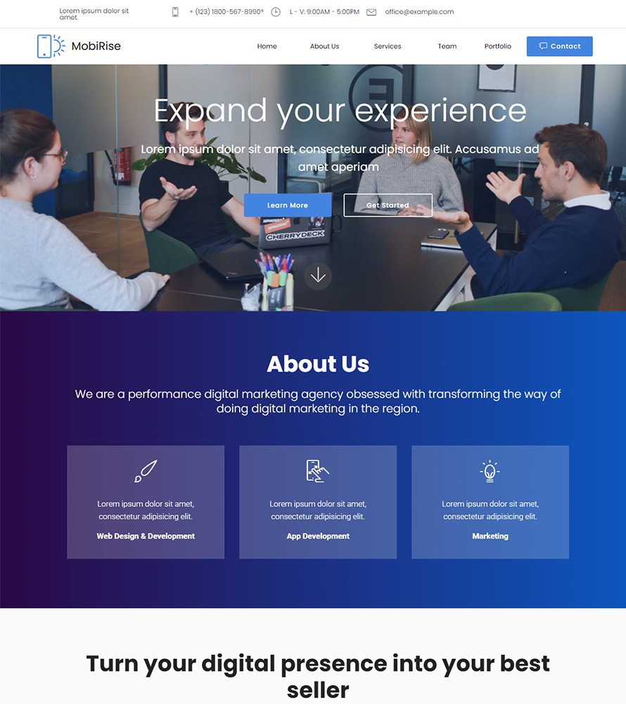 SAM Digital Agency Landing Page Template - Business & Services - Лендинг шаблон одностраничного сайта