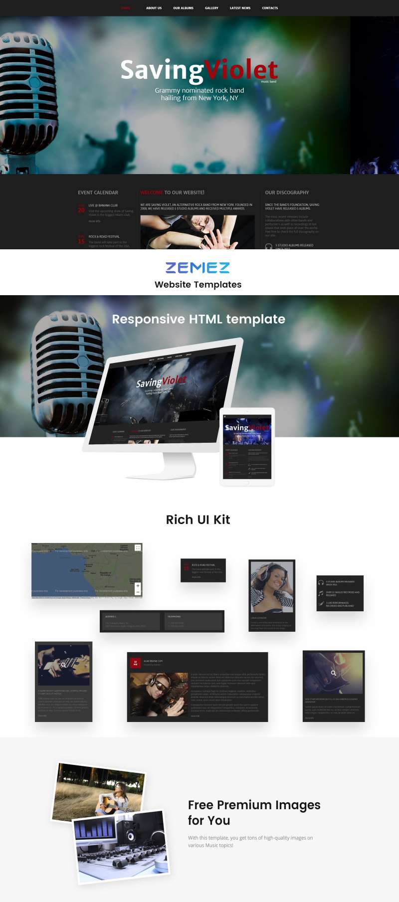 SavingViolet - хорошо подойдет для сайтов в области Музыкальная группа. HTML5 минималистичный шаблон - Music Band Responsive HTML5 Website Template.