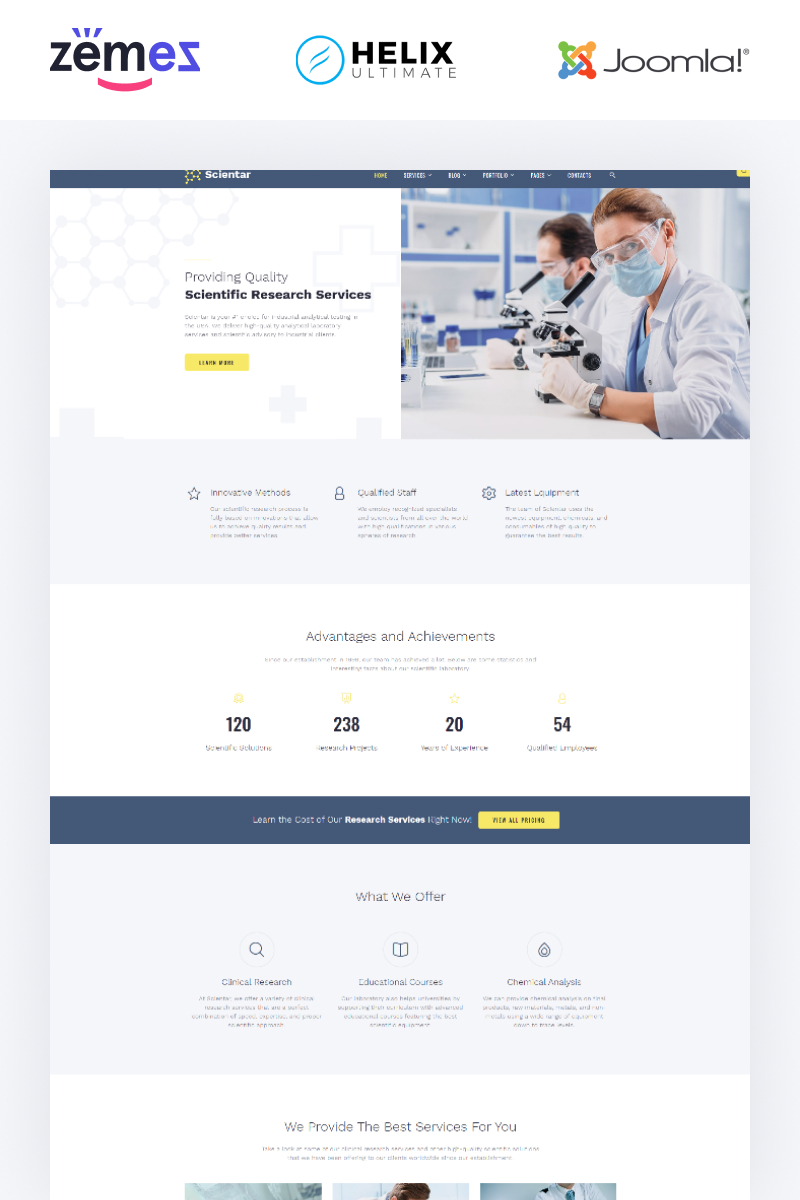 Scientar - хорошо подойдет для сайтов в сфере Научная лаборатория. Joomla шикарный шаблон - Science Lab Multipage Joomla Template.