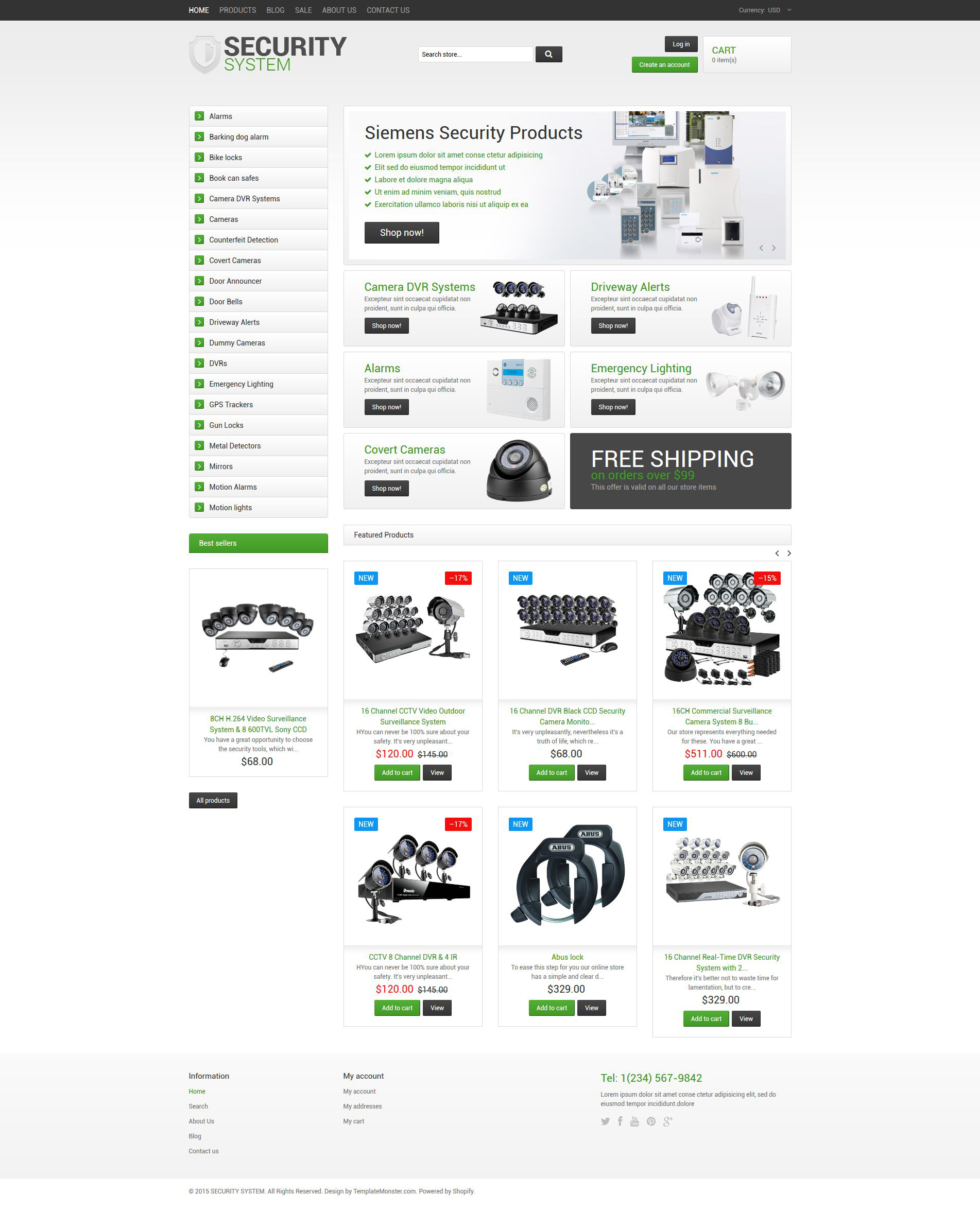 Security - отлично подходит для сайтов на тему Безопасность. Shopify шаблон интернет-магазина - Security Responsive Shopify Theme.