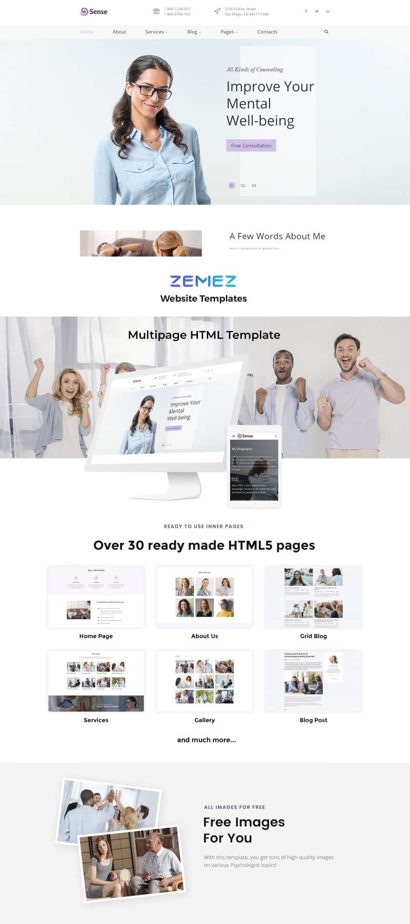 Sense - отлично подходит для сайтов на тему Психолог. HTML5 шаблон сайта - Psychologist Multipage Clean HTML Website Template.