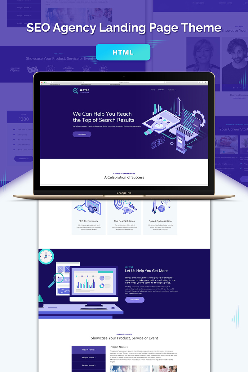 Marketing Agency - хорошо подходит для сайтов на тему Маркетинговое агентство. Лендинг шаблон одностраничного сайта - SEO Agency HTML Landing Page Template.