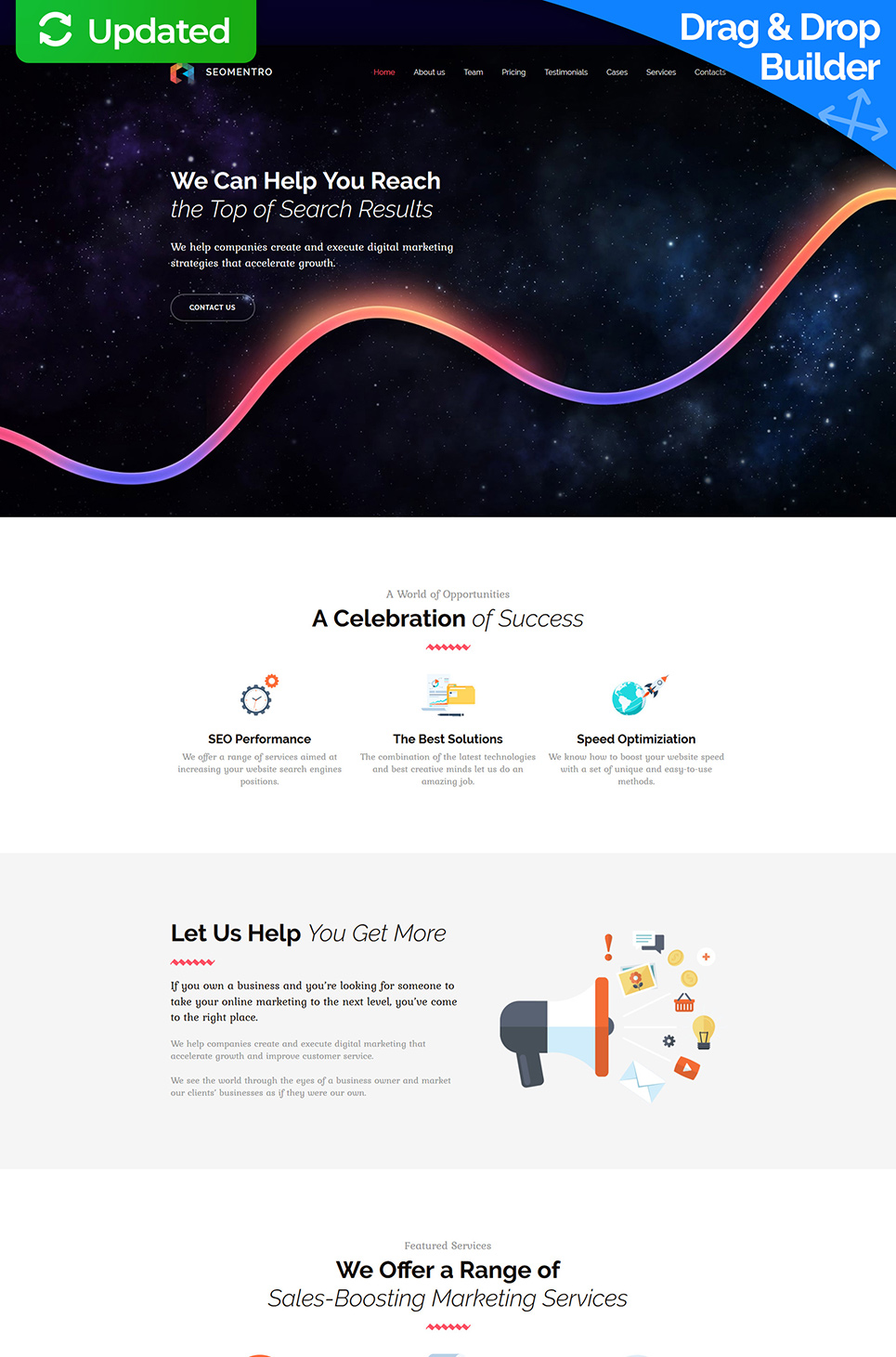Seomentro - подойдет для сайтов в сфере Маркетинговое агентство. Moto CMS 3 шаблон 2021 года - SEO & Digital Marketing Agency Moto CMS 3 Template.