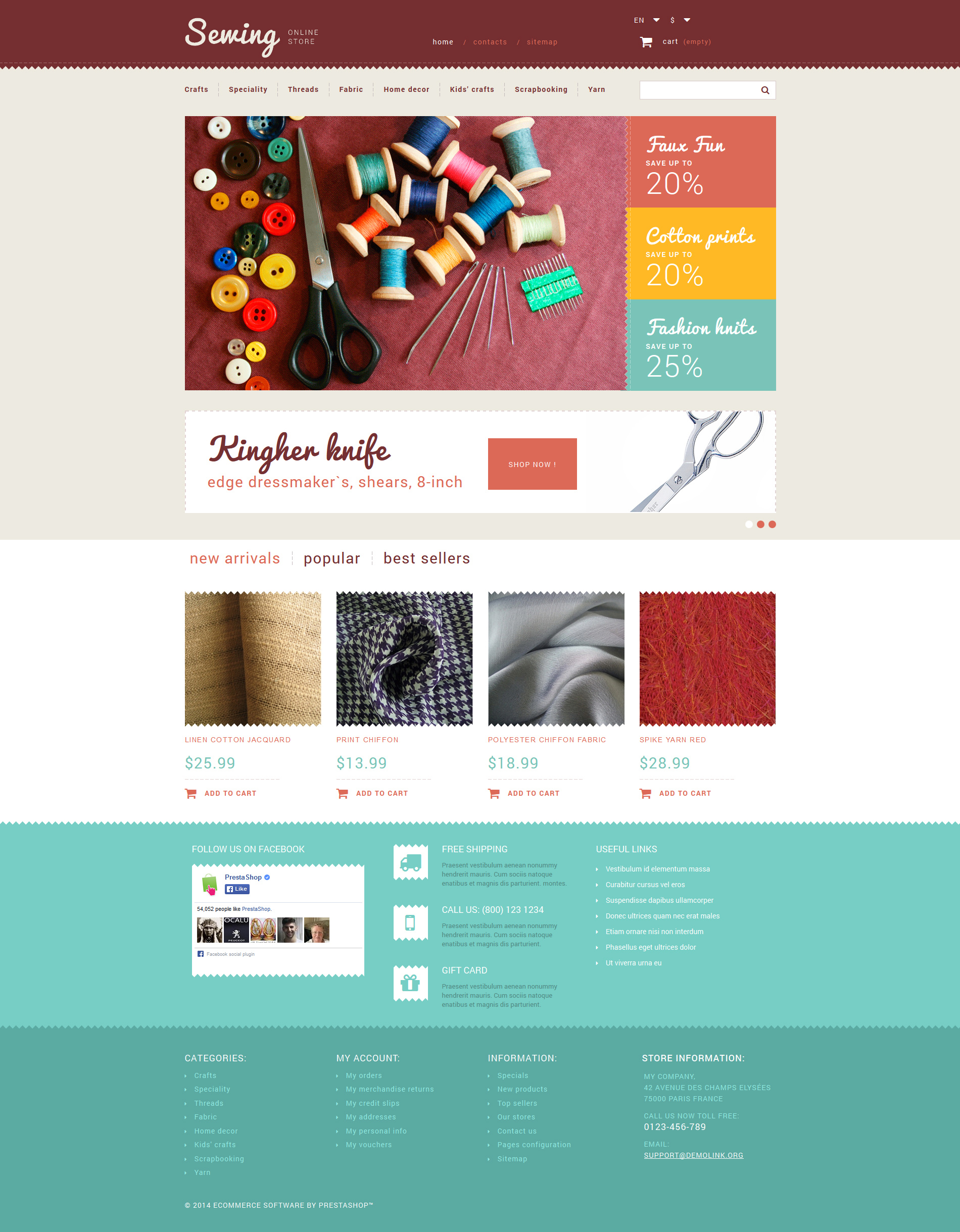 Швейный магазин prestashop тема - Crafts - PrestaShop шаблон для интернет-магазина