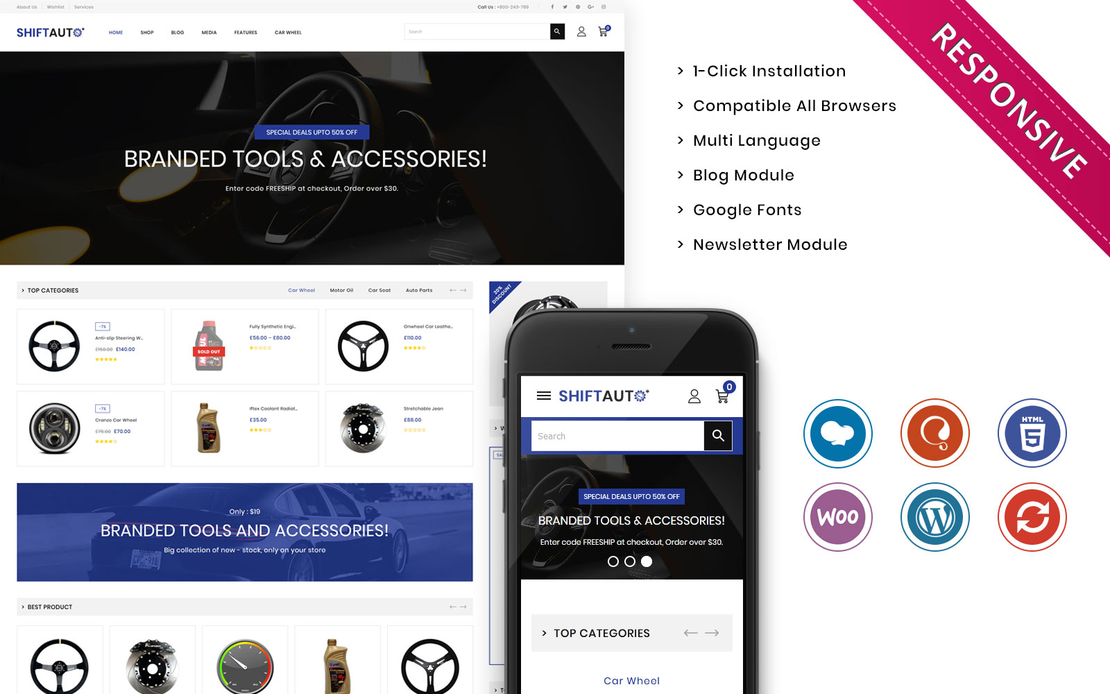 Shiftauto - специально для сайтов в категории Автодилер. WooCommerce интернет-магазин для Wordpress сайта - The Autoparts Store Responsive WooCommerce Theme.