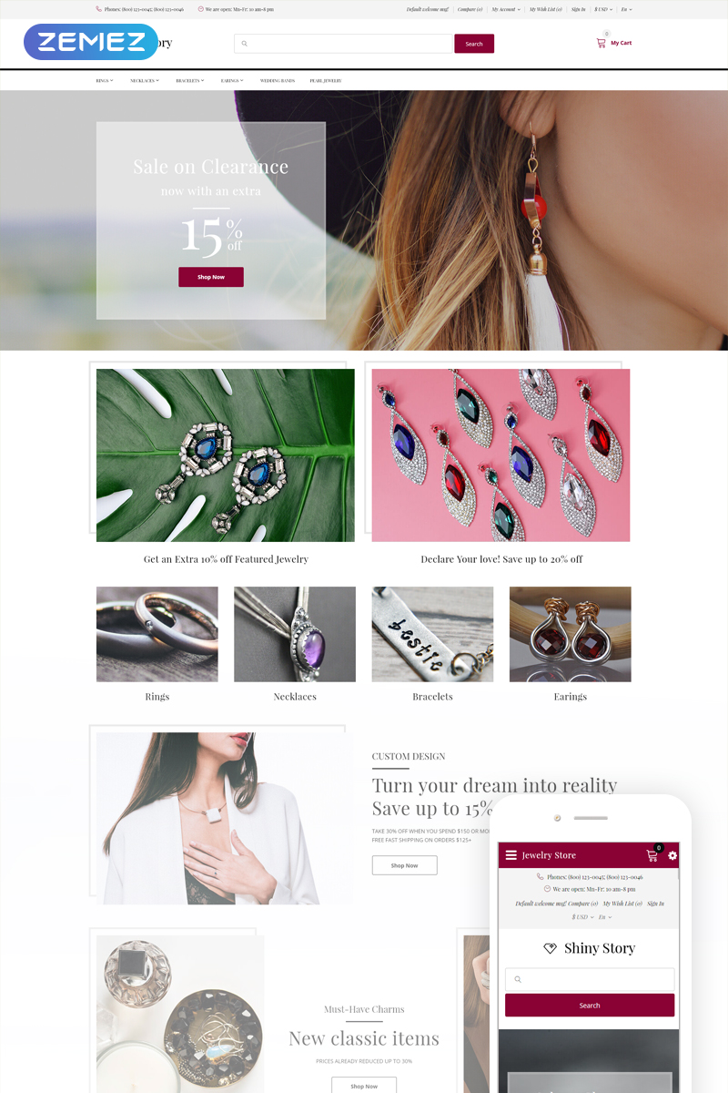Shiny Story - специально для сайтов в категории Аксессуары. OpenCart шаблон интернет-магазина - Jewelry OpenCart Template.