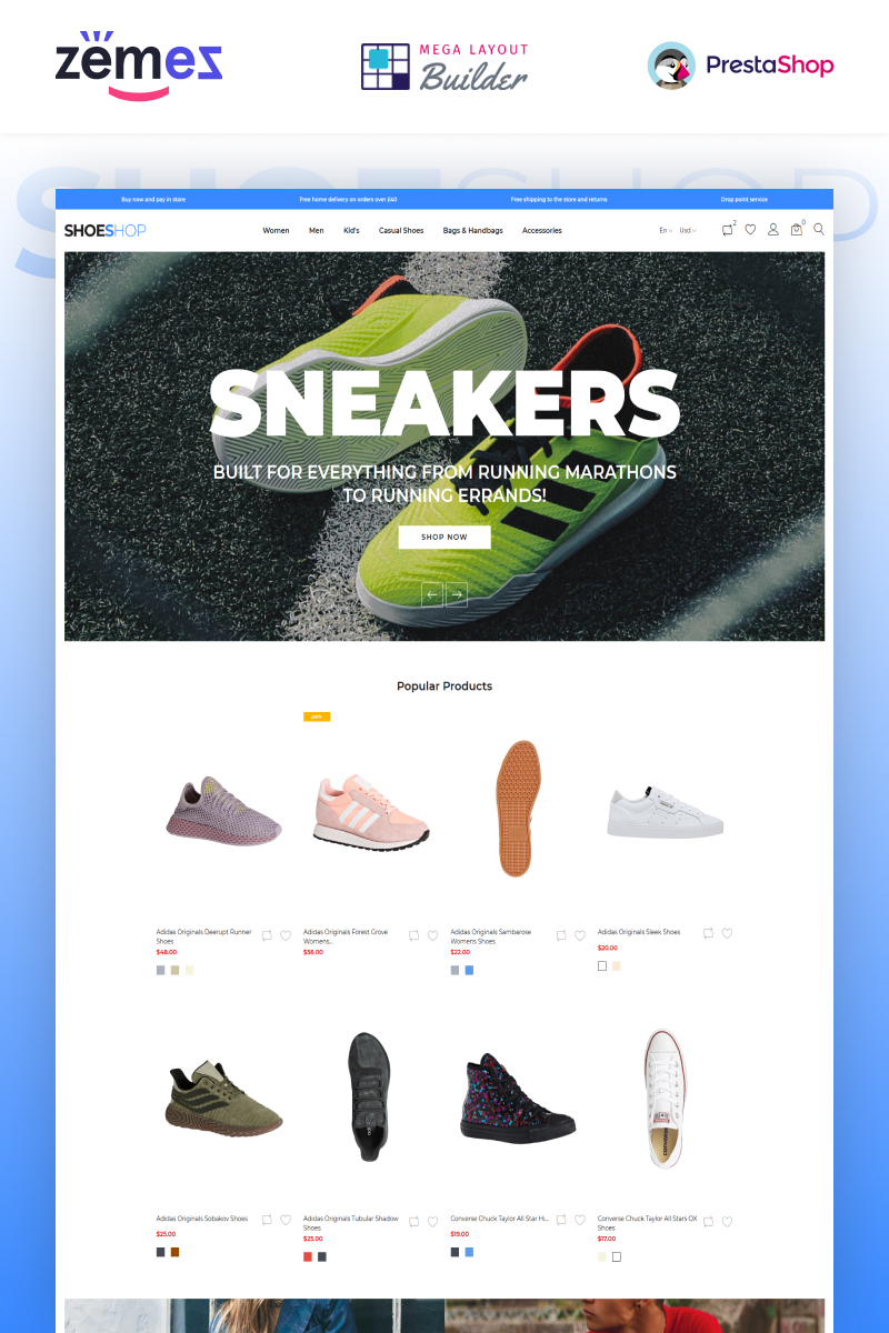 ShoeShop - превосходно подходит для сайтов на тему Магазин обуви. PrestaShop шаблон интернет-магазина - Boot Shop PrestaShop Theme.