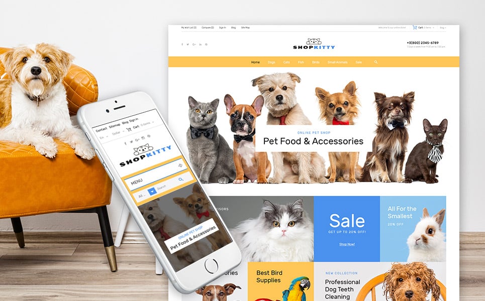 PrestaShop интернет-магазин для сайта - Cat - ShopKitty PrestaShop Theme, идеально подойдет для сайтов Кошки.