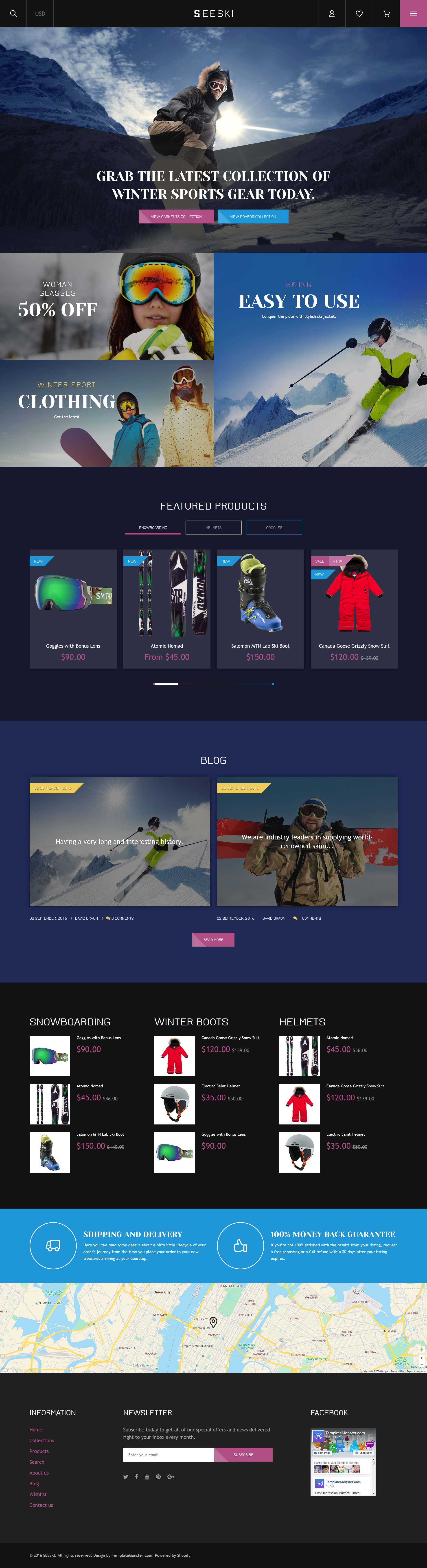 Skiing - подходит для сайтов на тему Катание на лыжах. Shopify интернет-магазин - Skiing Responsive Shopify Theme.