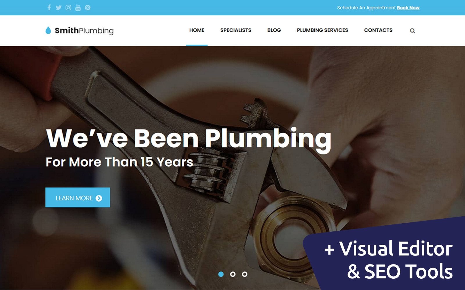 Moto CMS 3 мультишаблон - SmithPlumbing - Maintenance And Plumbing Moto CMS 3 Template, специально для сайтов в категории Сантехника.