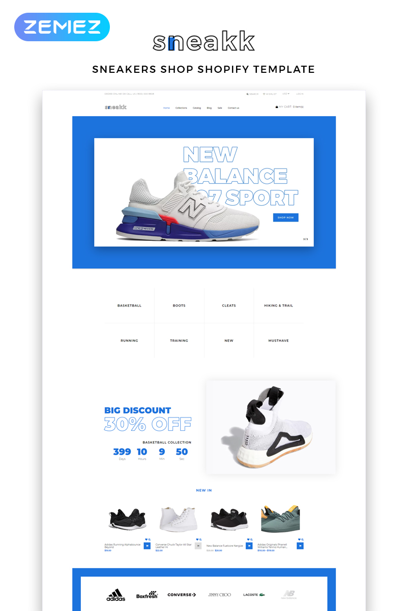 Sneakk - идеально подойдет для сайтов на тему Магазин обуви. Shopify шаблон для сайта интернет-магазина - Fashion Store Multipage Clean Shopify Theme.