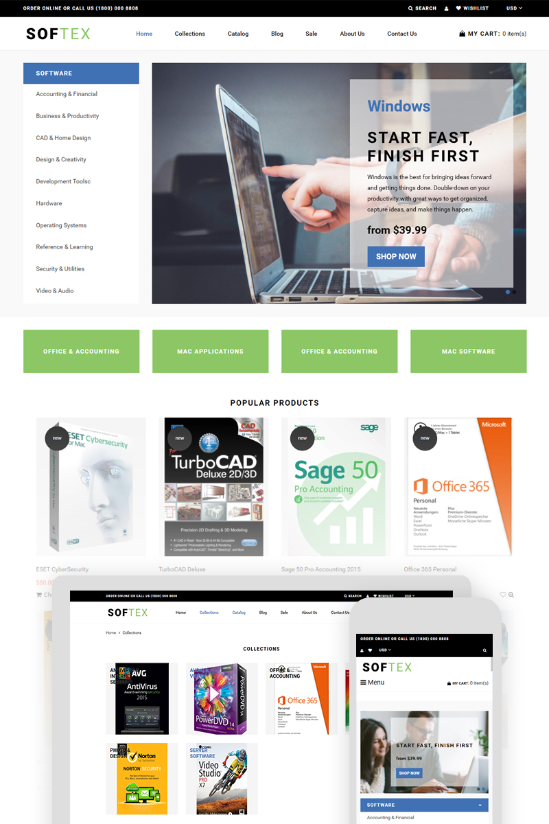 Softex - идеально подойдет для сайтов Магазин программного обеспечения. Shopify интернет-магазин - Software Store Shopify Theme.