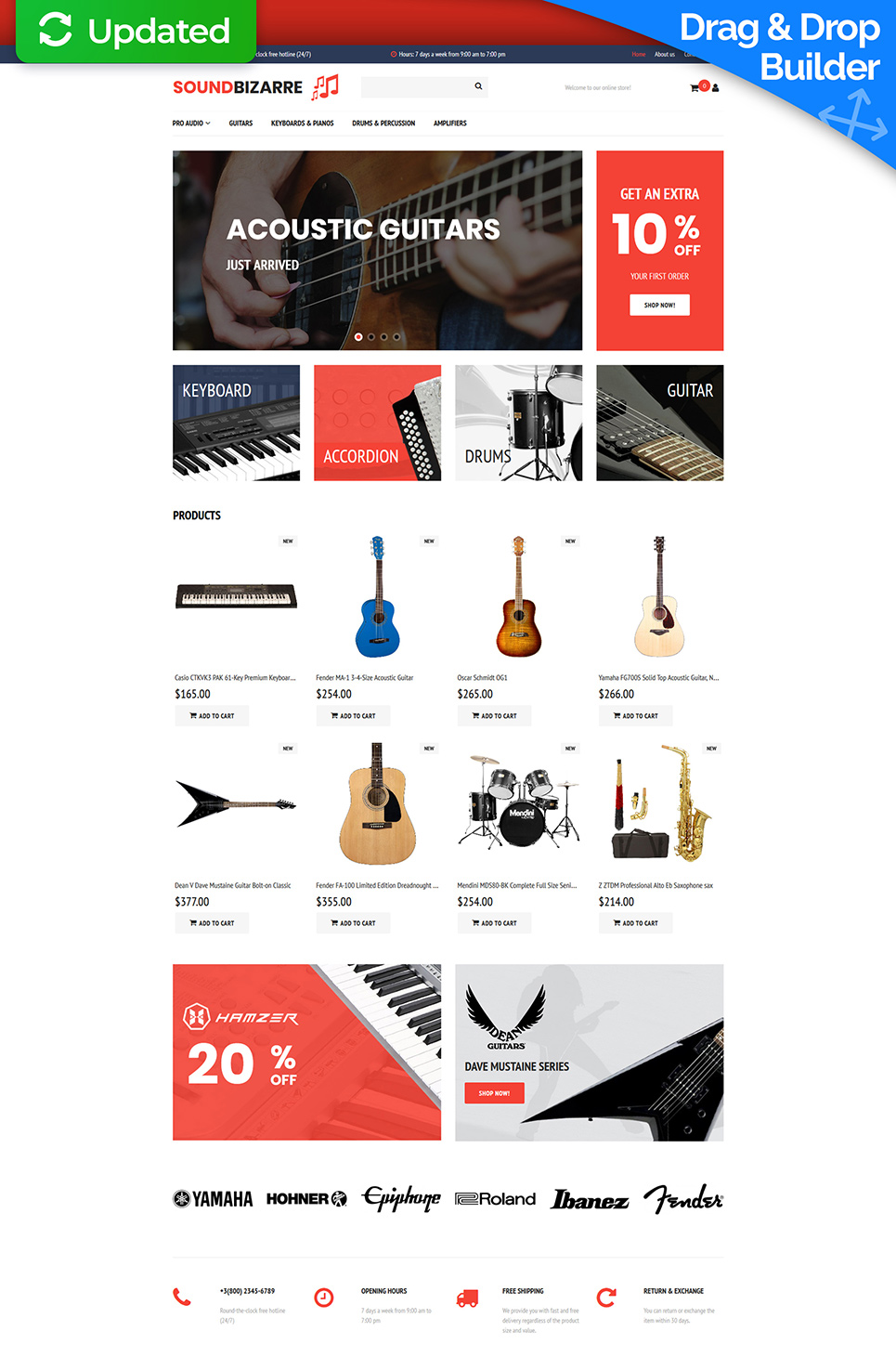 MotoCMS Ecommerce шаблон интернет-магазина - SoundBizarre - Music MotoCMS Ecommerce Template, идеально подойдет для сайтов на тему Музыкальный магазин.