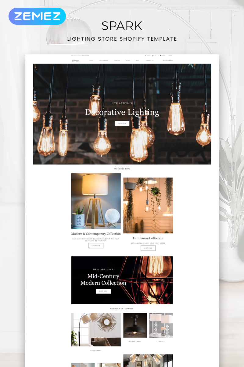 Spark - специально для сайтов в категории Электричество. Shopify интернет-магазин - Lighting Store Modern Shopify Theme.