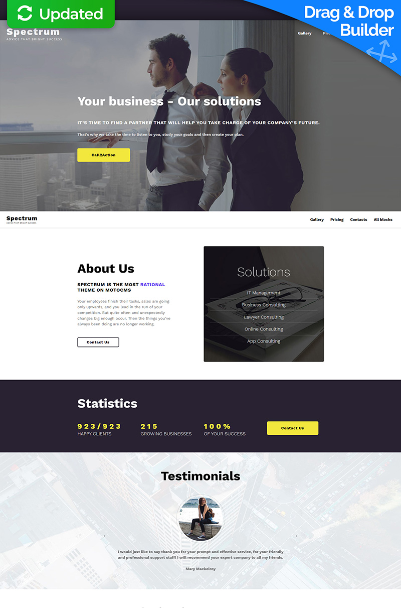 Лендинг шаблон одностраничного сайта - Spectrum - Consulting MotoCMS 3 Landing Page Template, идеально подходит для сайтов на тему Консалтинг.