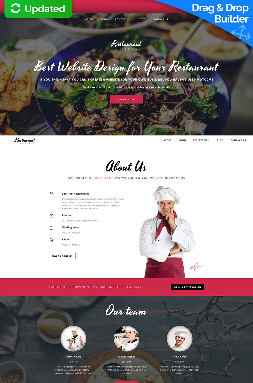 European Restaurant - хорошо подходит для сайтов Европейский ресторан. Moto CMS 3 продаваемый шаблон - Spectrum Restaurant Moto CMS 3 Template.