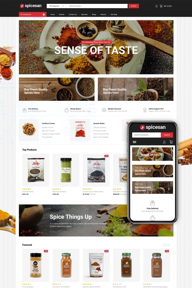 Spicesan - идеально подойдет для сайтов на тему Медицина. OpenCart интернет-магазин - Supermarket Store OpenCart Template.