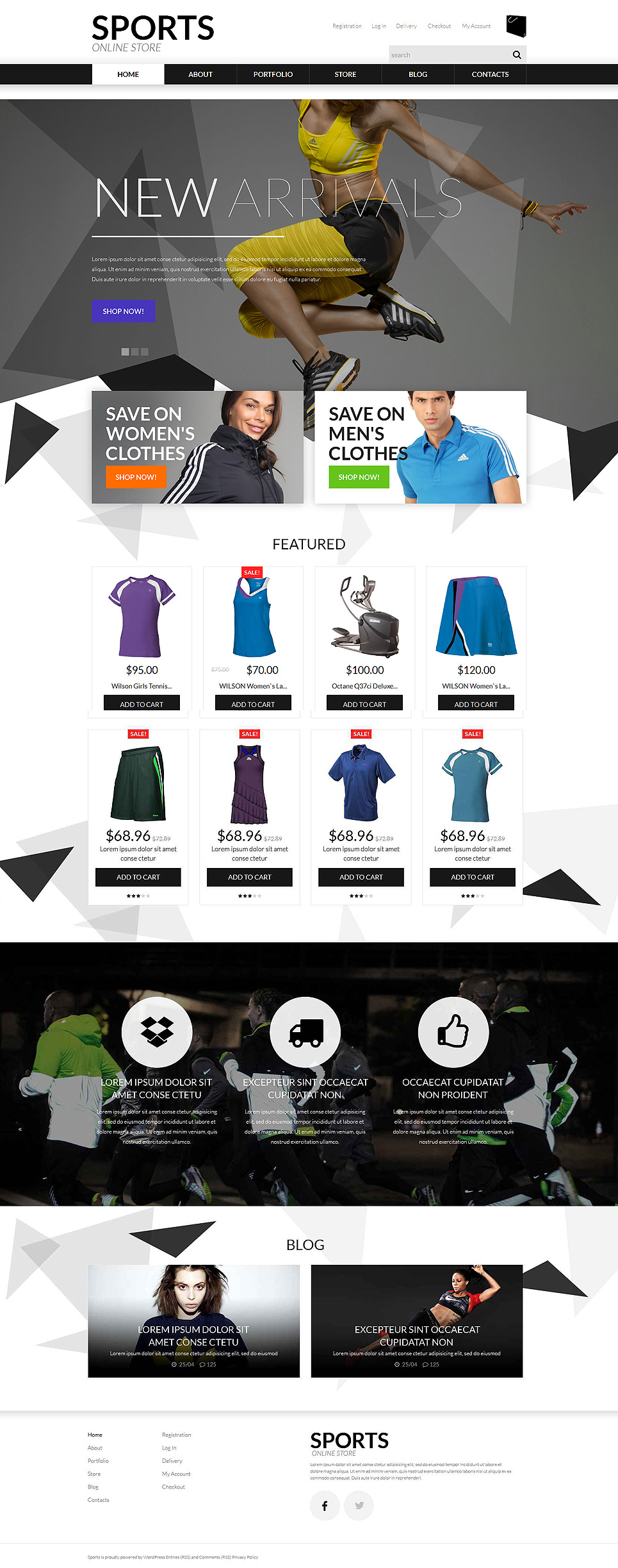 Sports Store - отлично подходит для сайтов в области Спортивный магазин. WooCommerce шаблон для интернет-магазина на Wordpress - Sports Apparel WooCommerce Theme.