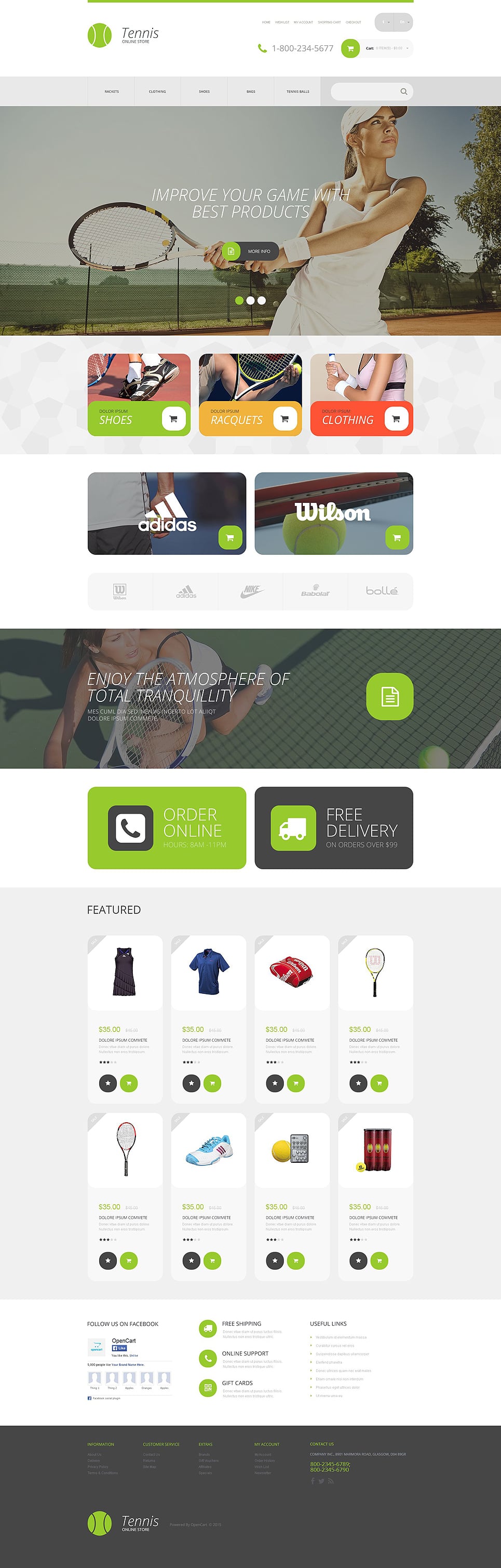 Шаблон спортивного магазина opencart - Tennis - OpenCart шаблон для интернет-магазина