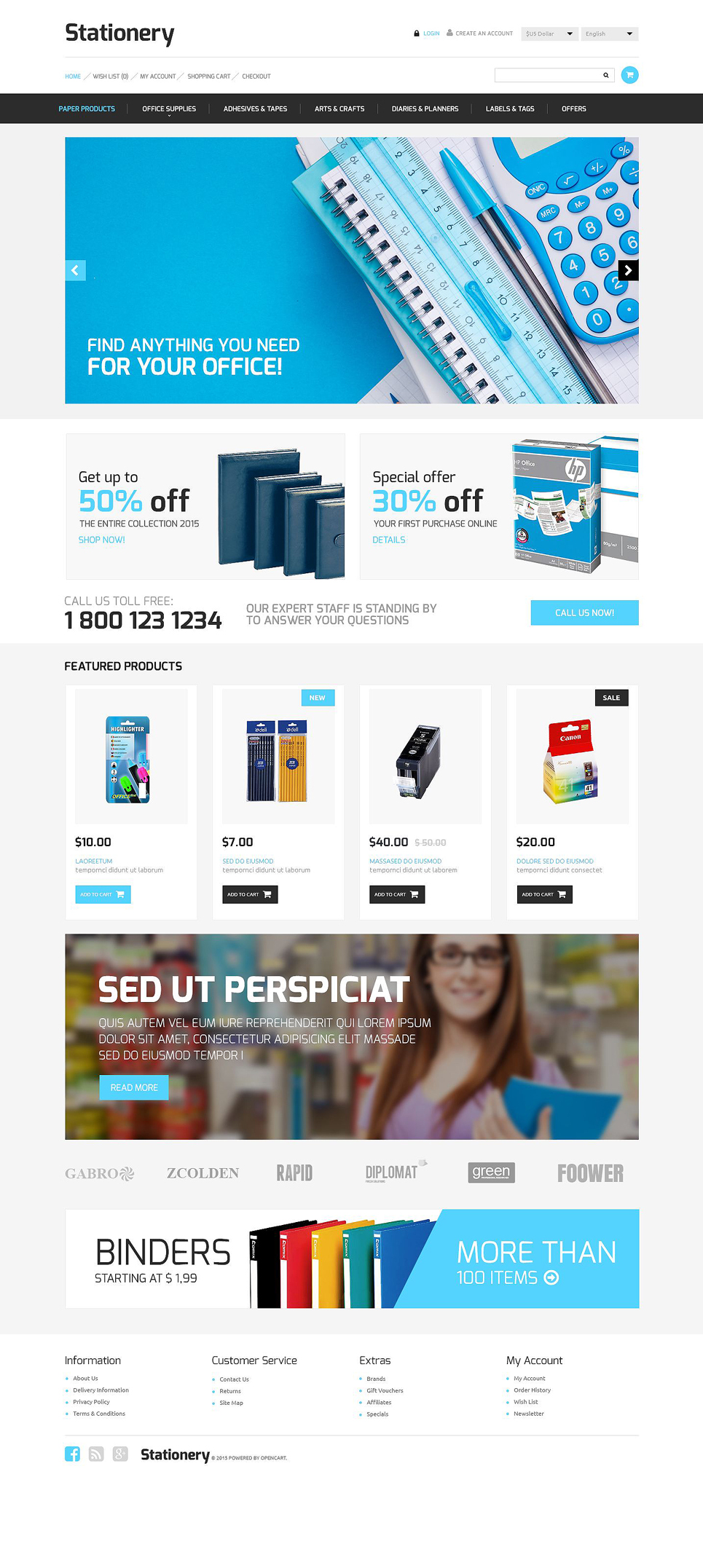 OpenCart интернет-магазин - Stationery - Stationery Store OpenCart Template, подходит для сайтов Канцелярские товары.