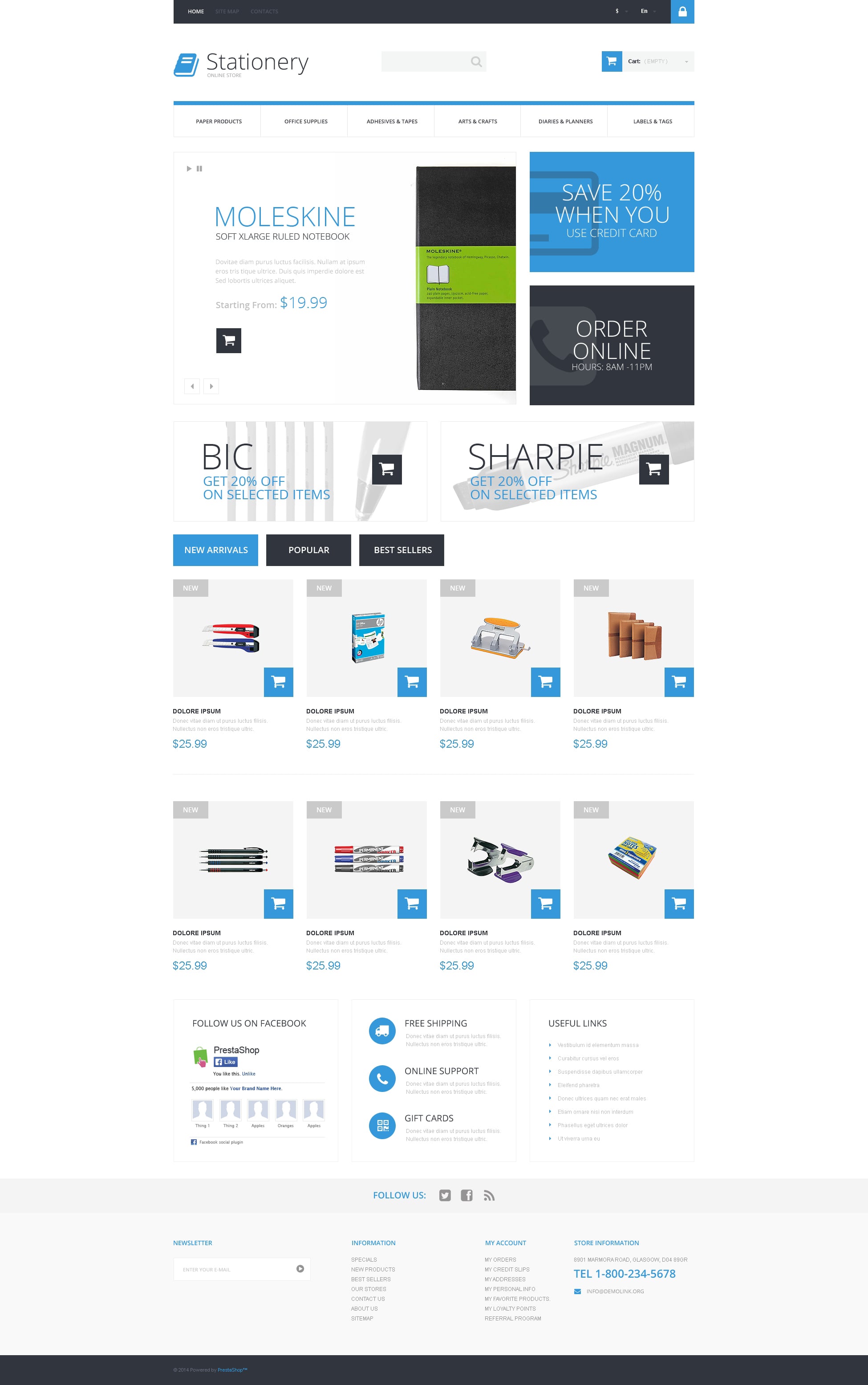 Канцелярский магазин prestashop тема - Stationery - PrestaShop шаблон интернет-магазина