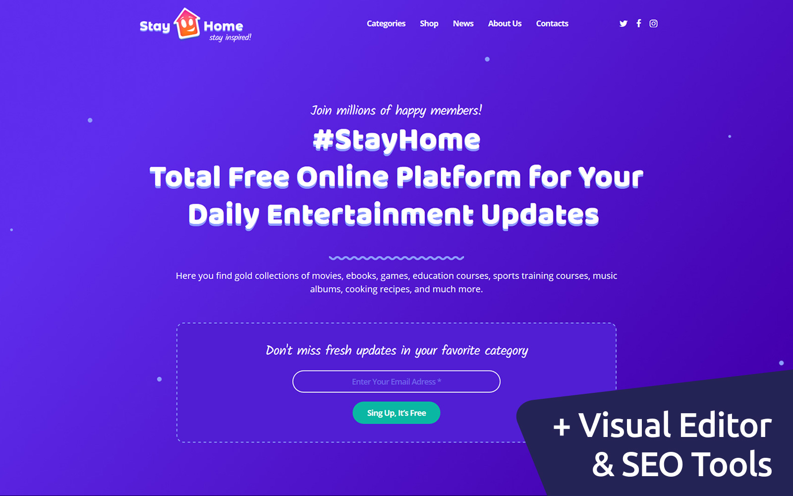 Entertainment - хорошо подходит для сайтов в сфере Развлечения. Moto CMS 3 приятный шаблон - Stay Home Moto CMS 3 Template.