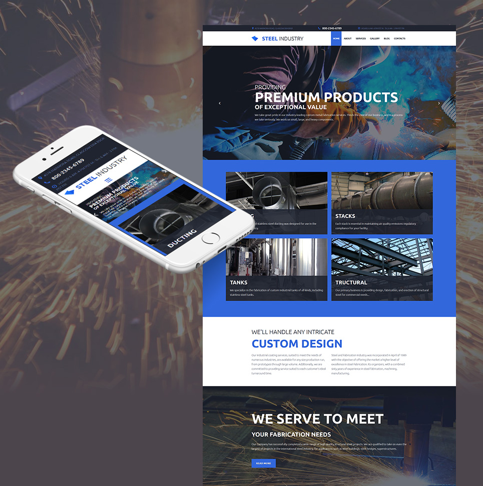 Steelworks - подходит для сайтов в категории Металлургическая компания. Moto CMS 3 продаваемый шаблон - Steel Industry Responsive Moto CMS 3 Template.