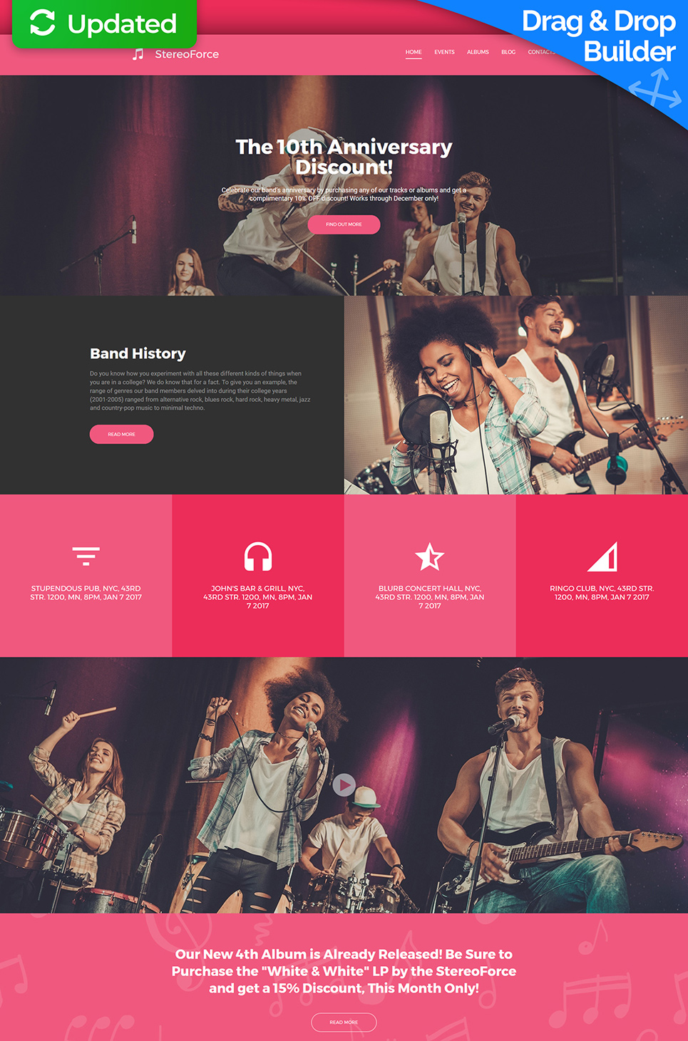 Stereo Force - хорошо подойдет для сайтов Музыкальная группа. Moto CMS 3 мультишаблон - Music Band Moto CMS 3 Template.
